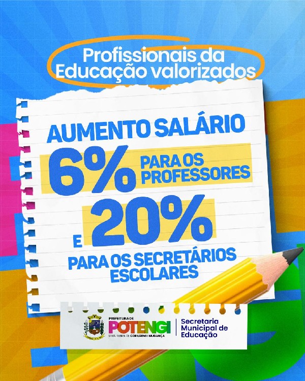 A Prefeitura de Potengi anunciou, nesta semana, o reajuste salarial dos profissionais da educação do município, reafirmando o compromisso com a valorização dos servidores e com o fortalecimento do ensino público.